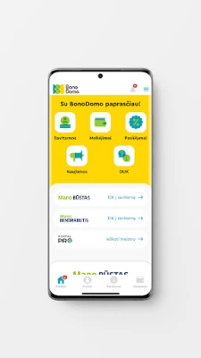 Participați activ la viața comunității și influențați deciziile colective. BonoDomo vă permite să înregistrați cu ușurință sesizări, să vă exprimați opinia în cadrul voturilor și sondajelor, asigurându-vă că vocea dumneavoastră este auzită. Ca utilizator BonoDomo, beneficiați de asemenea de oferte și avantaje exclusive, create special pentru a îmbunătăți experiența dumneavoastră. Rămâneți informat cu o selecție curată de știri relevante, de la actualizări din marile orașe lituaniene la sfaturi utile pentru timpul liber și informații de la diverși furnizori.