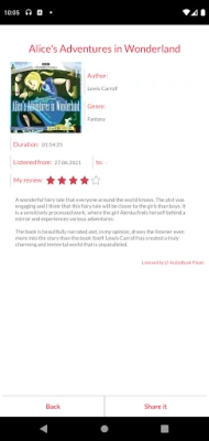 Personalizează-ți la maximum experiența de ascultare și gestionare a colecției tale. Cu LTAudiobookPlayer, poți clasifica fără efort titlurile în „citite", „în curs de lectură" sau „necitite", având control complet asupra progresului tău. Adaugă semne de carte precise, însoțite de notițe personale, pentru a reveni oricând la momentele cheie. Marcați-vă preferatele și creați-vă propriile etichete, transformând colecția într-o multitudine de biblioteci tematice personalizate. Înregistrează-ți impresiile despre fiecare carte cu o recenzie detaliată și împărtășește-o cu prietenii pe rețelele sociale, invitându-i în universul tău literar. Urmărește cu ușurință momentul în care ai început și ai terminat fiecare audiocarte, având o perspectivă clară asupra obiceiurilor tale de lectură lunară.