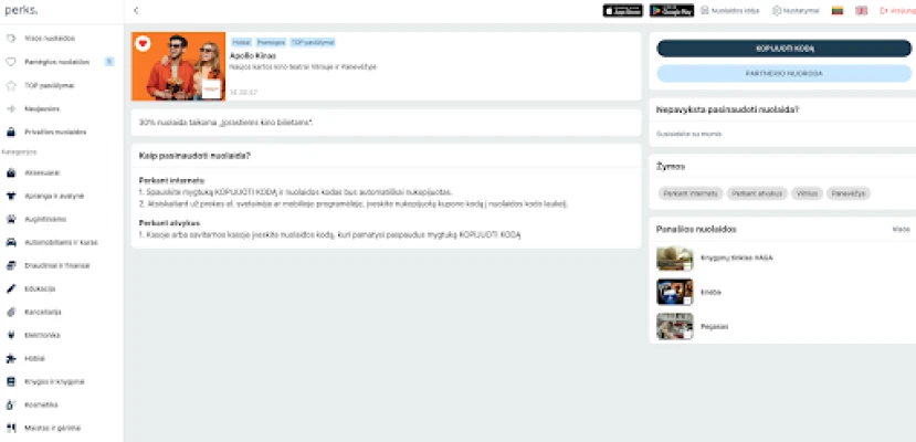 Descoperiți o lume a economiilor și a privilegiilor cu perks, platforma de încredere ce reunește deja peste 90.000 de membri. Fie că vă doriți o cină memorabilă la restaurant, o seară de neuitat la film, o cafea aromatică la cafeneaua preferată, sesiuni energizante la sala de sport, o garderobă reînnoită cu articole de îmbrăcăminte la modă sau să vă pierdeți în paginile unei cărți bune dintr-o librărie, perks transformă fiecare dorință într-o oportunitate de a economisi inteligent.