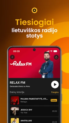 Radijas.lt îmbogățește experiența de ascultare prin funcționalități inteligente și interactive. Aveți posibilitatea de a reasculta emisiunile preferate de pe RELAX FM, de a identifica instantaneu melodiile difuzate în direct și de a participa la concursuri și jocuri cu premii valoroase, transformând fiecare sesiune într-o ocazie de divertisment și recompense. Rămâneți aproape de comunitatea radio, aflând noutăți despre posturile favorite și proiectele lor în derulare. Mai mult, designul intuitiv și compatibilitatea excelentă permit utilizarea Radijas.lt fără efort, chiar și în mașină, pentru o călătorie sonoră plăcută și neîntreruptă, oriunde v-ați afla.
