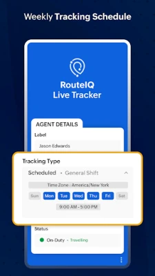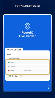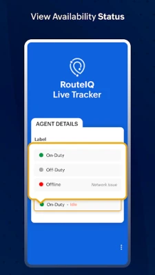 RIQ LT Agent este aplicația esențială pentru agenții de teren, complementând RouteIQ Live Tracker. Asigură monitorizarea eficientă a locației, permițând echipelor operaționale o vizibilitate precisă asupra activității forței de muncă mobile în timp real.