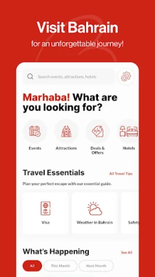 Descoperiți o poartă către experiențe de călătorie personalizate, create cu grijă pentru fiecare aventurier. Fie că sunteți o familie în căutare de distracție și momente prețioase, sau un explorator solitar visând la liniște și descoperiri autentice, aplicația Bahrain Tourism transformă fiecare vis în realitate. Aceasta reunește o selecție meticuloasă de atracții fascinante, opțiuni de cazare confortabile și evenimente vibrante, toate alese pentru a se potrivi perfect stilului și dorințelor dumneavoastră unice.