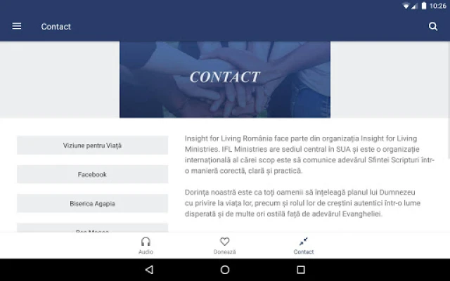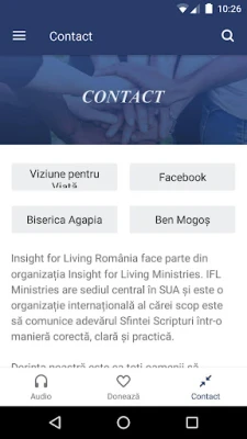 Pătrundeți într-o lume de inspirație și înțelepciune spirituală, oriunde v-ați afla, prin intermediul aplicației Viziune pentru viață. Concepută pentru a hrăni sufletul și a lumina mintea, această platformă digitală oferă acces direct la mesajele pline de forță și perspectivă ale binecunoscutului pastor american Charles Swindoll. Descoperiți o colecție valoroasă de învățături menite să vă ghideze și să vă îmbogățească parcursul spiritual.